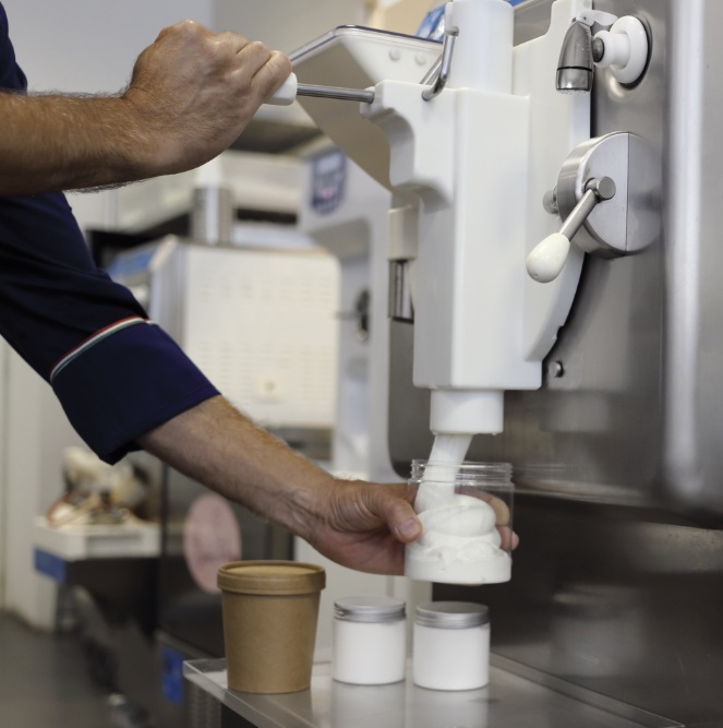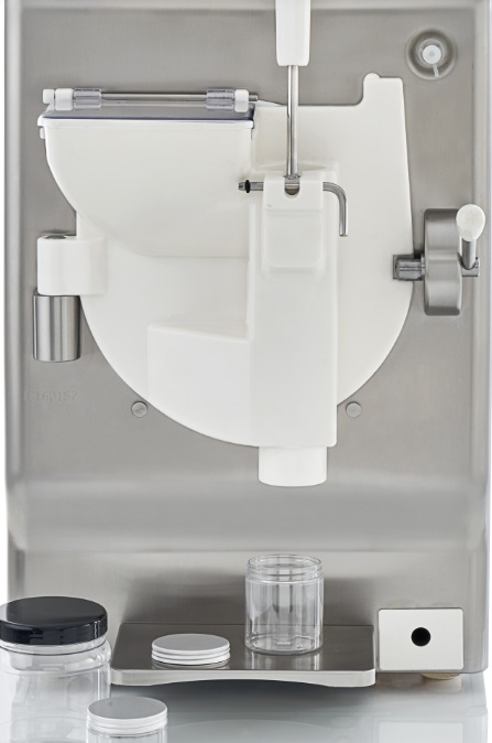 Dozirna vrata omogočajo enostavno polnjenje kozarčkov za sladice ali posod za sladoled ter izdelavo različnih sladic neposredno iz stroja.